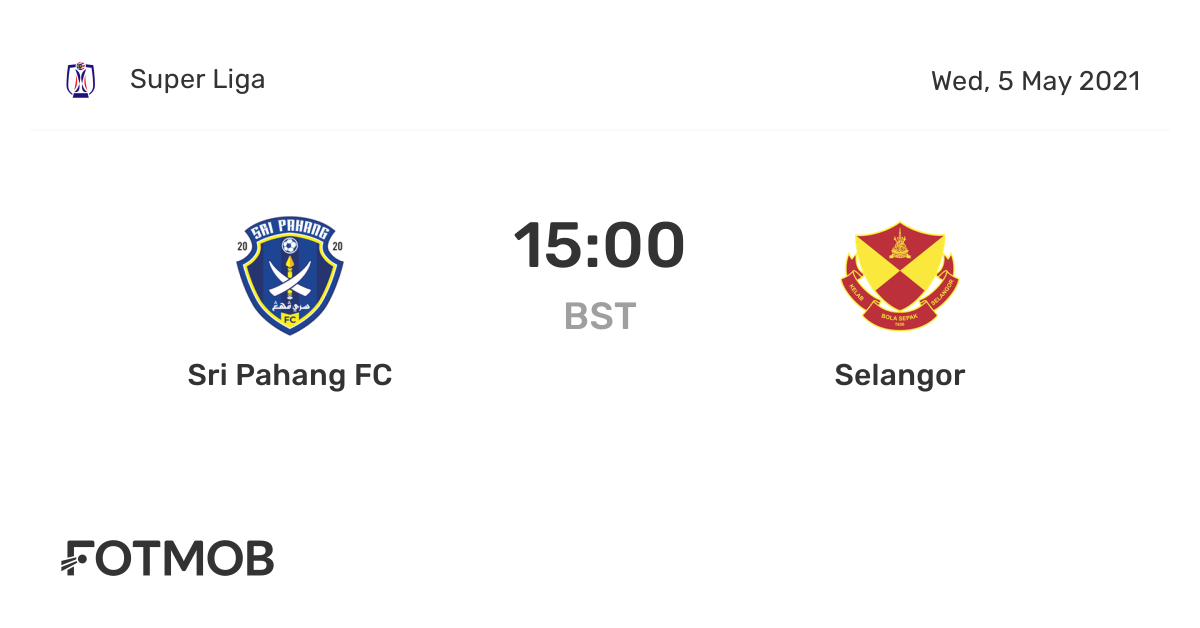 Kick-off times are converted to your local PC time. Selangor Football Club Sri Pahang FC 的比分直播和在线视频现场直播 于UTC时间 2022年4月29日 下午200 在 Super LeagueMalaysia 开始. Home Live Matches Corners Fixtures Leagues.
